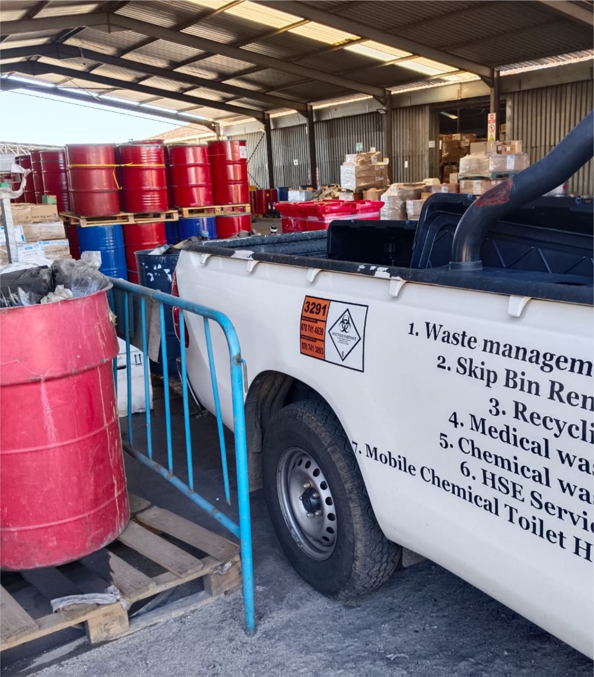 Health Care Risk Waste is transported to the treatment facility in KTH Environmental (Pty) Ltd own’s fleet. Waste collected are in containers and boxes.